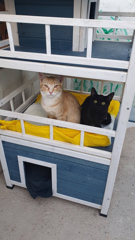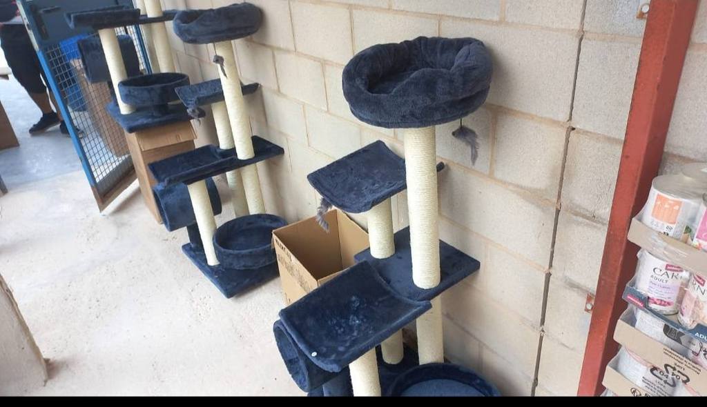 Wir haben neue Catwalks gebaut und Häuschen, die gespendet wurden, dank Manu und Andreas vor Ort, ein PS-Pärchen für unsere Katzen. Ebenso haben wir viele Häuschen und Kratzbäume, Tonnen bekommen, von Euren Spenden und mit Hilfe des THNW Spanien mit Julia Choi. Wir haben Deckenspenden erhalten und so haben es die Katzen im Tierheim warm und etwas kuschelig im kalten Winter.