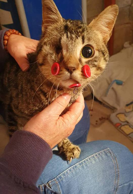 Auch Notfall Knöpfchen, der blinde Kater mit den roten Knöpfen im Gesicht, FIV-positiv und Kumpel Rey. Auch hier mussten wir Anfeindungen und Beleidigungen ertragen auf der Suche nach Lösungen. Aber es hat sich gelohnt. Auch für die 2 hat sich das perfekte neue Leben ergeben.