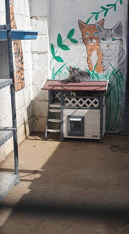 Ende September 2023 sind wir wieder vor Ort, um für die Katzen dort etwas zu verbessern. Die von uns gebauten Catwalks haben den Winter und Sommer kaum überstanden. Doch die Katzen lieben diese Liegemöglichkeiten. So können sie nach oben ausweichen, in der Sonne liegen und relaxen. Seither sind die Katzen im Tierheim entspannter, fröhlicher und scheue Katzen wurden plötzlich zahm. Zuvor hatten sie nur den blanken Betonboden.