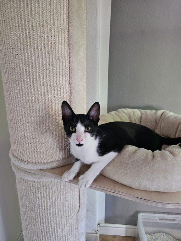 Niko – ein kleiner Sonnenschein sucht sein Für-Immer-Zuhause Niko wurde am 01.04.2025 geboren und ist bereits kastriert sowie negativ auf FIV und FeLV getestet. Er lebt aktuell auf einer Pflegestelle in Siegburg. Der junge Kater ist – wie es seinem Alter entspricht – verspielt, neugierig und aufgeschlossen. Er liebt es, seine Umgebung zu erkunden und mit Artgenossen zu toben. Für sein neues Zuhause wünscht er sich deshalb unbedingt einen sozialen Katzenfreund im gleichen Alter, mit dem er spielen und kuscheln kann. Alternativ bringt er gerne seine Freundin Nika mit, die noch etwas schüchterner ist – doch durch Nikos offenen Charakter bekommt sie viel Sicherheit und Stabilität an seiner Seite. Da er keinen Freigang kennt, sucht Niko ein Zuhause in reiner Wohnungshaltung – am liebsten mit gesichertem Balkon oder Fensterplätzen, von denen er die Welt beobachten kann.