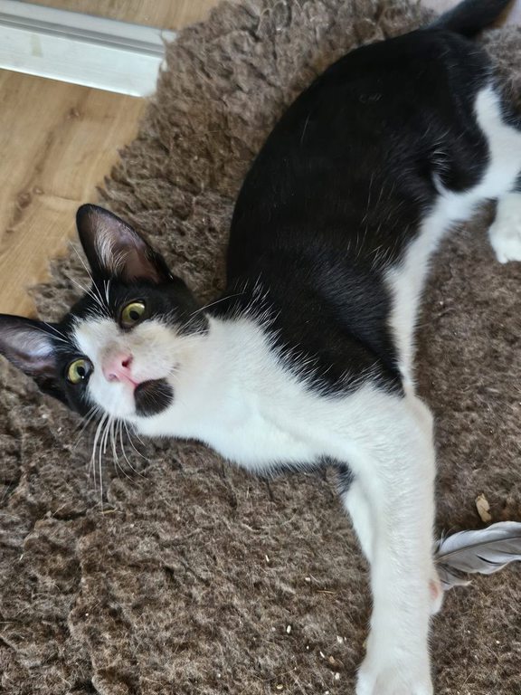 Karlheinz wurde in einer Wohngegend eingefangen zusammen mit Mama Cora, Klausi und Karla. geb. 05/2025. Er ist lieb, freundlich, sehr sozial und verspielt. Beim neuen Menschen braucht er etwas Zeit. Gerne zieht er auch mit seinen Geschwistern Karla oder Klausi um oder auch mit Mirta. Er lebt auf PS bei Speyer.
