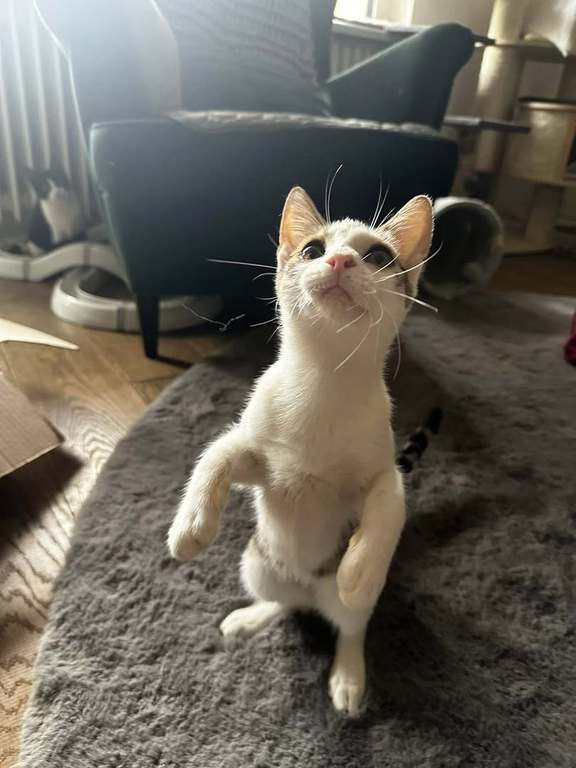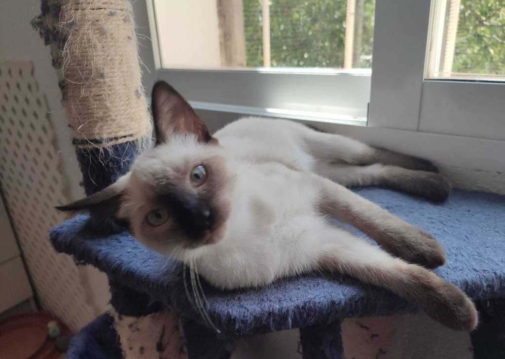 Siammix Mirta: Sie lebt auf Pflegestelle bei Speyer. Geb. 01.03.2025. Sie kam mit ihrer Mama ins Tierheim. Jetzt wohnt sie bei 3 anderen Kitten auf PS und ist hier sehr glücklich. Gerne zieht sie auch mit einer ihrer Freunde aus Klausi, Karlheinz oder Karla. Ich bin sehr freundlich, sozial, verspielt, aktiv.