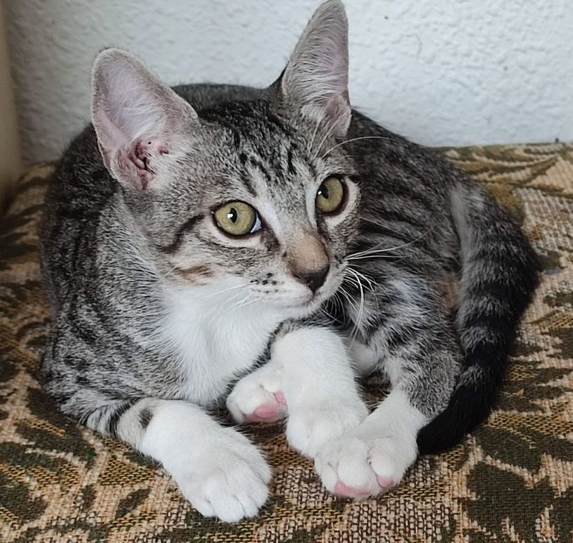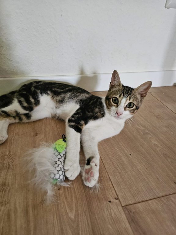 Name: Marlene Geboren: 15. April 2024 Gesundheit: kastriert, vollständig geimpft, FIV/FelV negativ getestet Marlene ist eine ganz besondere kleine Katze, die nach einem schweren Schicksal nun endlich ein liebevolles Zuhause sucht. Im Alter von etwa 9 Monaten hatte sie einen Autounfall. Dabei wurde ihr Becken gebrochen, das in Spanien leider nicht operiert werden konnte. Es ist schief zusammengewachsen, weshalb Marlene in ihrer Beweglichkeit eingeschränkt ist. Springen fällt ihr schwer und sie bewegt sich insgesamt etwas weniger – Schmerzen hat sie aber keine. Mehrere Untersuchungen in zwei Tierkliniken (inklusive CT) haben bestätigt, dass eine erneute Operation nicht sinnvoll wäre.
