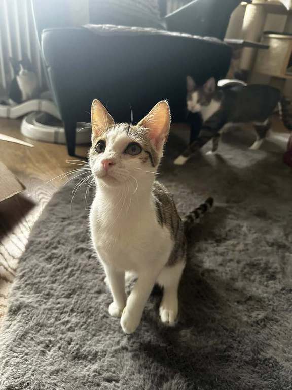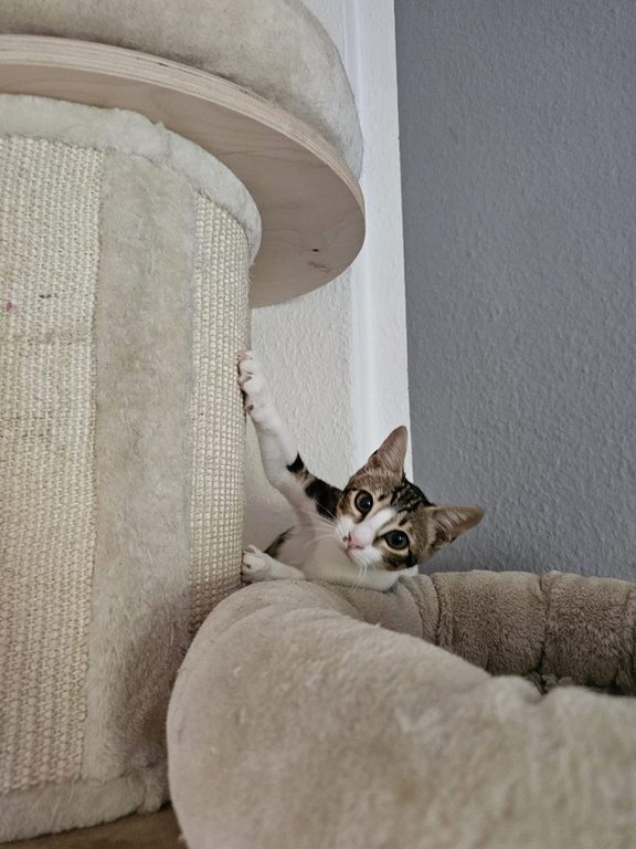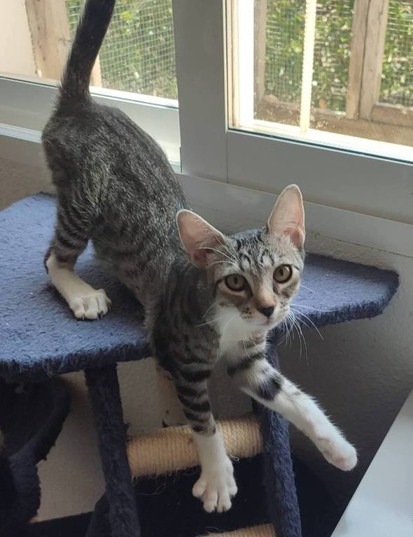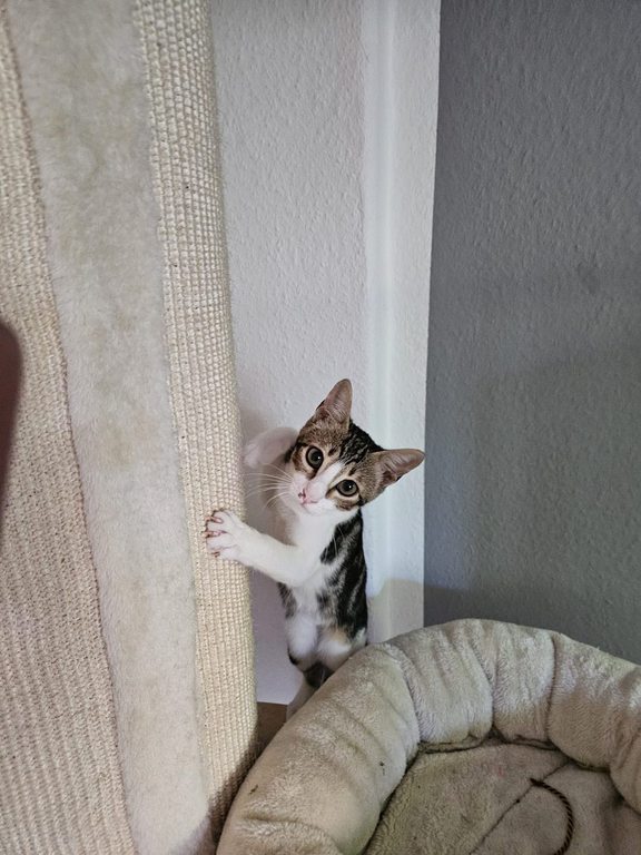 Kleine Powerkatze Sil sucht ihr Traumzuhause ✨ Die süße Sil (geb. am 24.03.2025) lebt aktuell auf einer Pflegestelle bei Limburg und ist ein richtiger kleiner Wirbelwind. Sie ist bereits gechippt, geimpft, kastriert und negativ auf FIV und FeLV getestet. Sil versteht sich grundsätzlich mit anderen Katzen, zeigt aber schon jetzt ein ziemlich dominantes Wesen – selbst ältere Katzen werden von ihr gern mal angefaucht, wenn es nicht nach ihrem Kopf geht. Das Katzen-1x1 muss sie also noch lernen. Dafür hat sie ihre Menschen umso mehr ins Herz geschlossen: Sil liebt Nähe, klettert begeistert auf die Schultern, schläft gerne am Hals und kuschelt sich am liebsten dort an, wo sie den Herzschlag spüren kann. Dann setzt der Milchtritt ein, und sie schnurrt sich regelrecht in eine kleine Trance. ? Typisch für ihr junges Alter ist sie sehr verspielt, manchmal ein kleiner Frechdachs, aber dabei immer unglaublich liebenswert und unterhaltsam. Für Sil suchen wir ein Zuhause mit viel Geduld, Liebe und Zeit, um ihre Energie in die richtigen Bahnen zu lenken – und Menschen, die Freude an einer echten Charakterkatze haben.