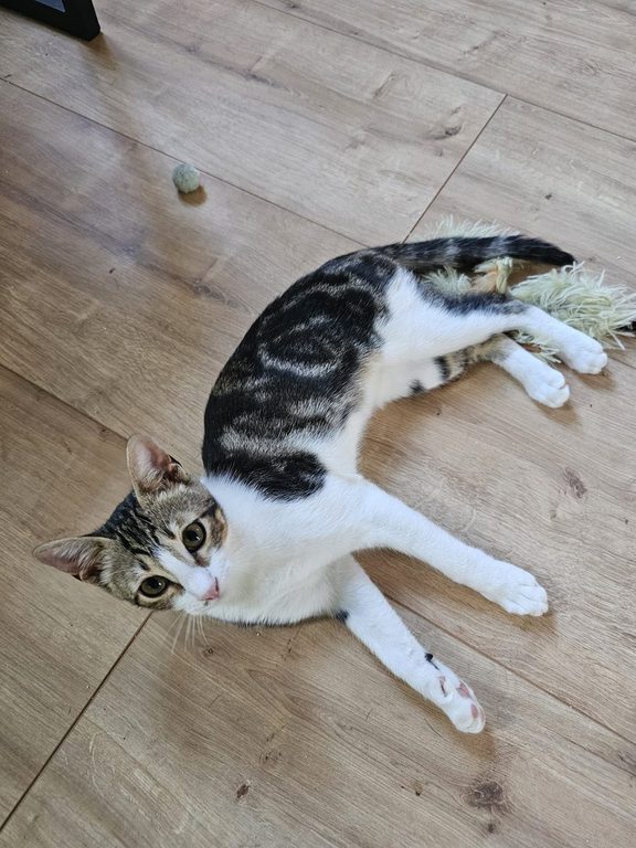 Karla wurde in einer Wohngegend eingefangen zusammen mit ihrer Mama Cora, Karlheinz und Klausi. geb. 05/2025. Sie ist lieb, freundlich, sehr sozial und verspielt. Beim neuen Menschen braucht sie etwas Zeit. Gerne zieht sie auch mit einer ihrer Geschwister Klausi oder Karlheinz um oder mit Mirta.