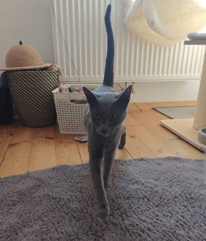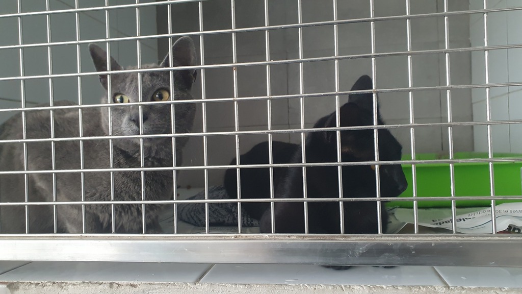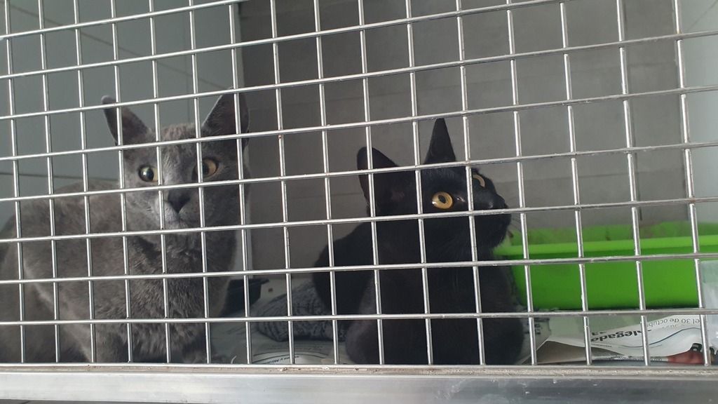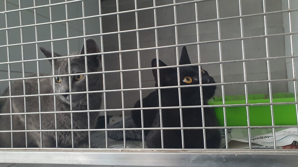 Duquessa ist vermutlich ein Kartäuser-Mix: Ihre einzigartige Augenfarbe, das wunderschöne Fell und ihr liebevoller Charakter sprechen eindeutig dafür. Auch Duque könnte ein Teil dieser seltenen Linie sein, auch wenn sein schwarzes Fell es weniger sichtbar macht. Beide sind sehr lieb, freundlich, verschmust und sozial – ein tolles Paar, das sich liebt und unterstützt.