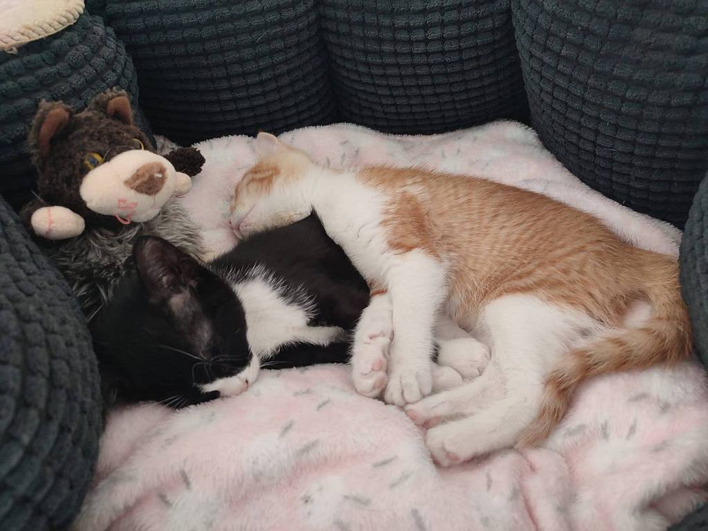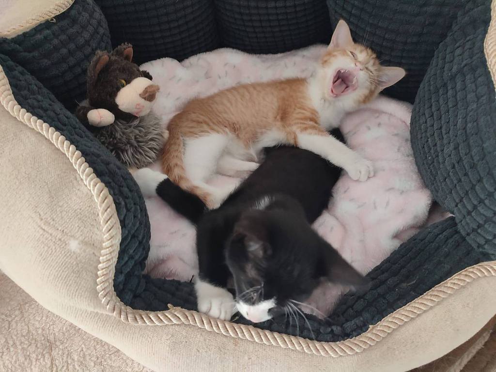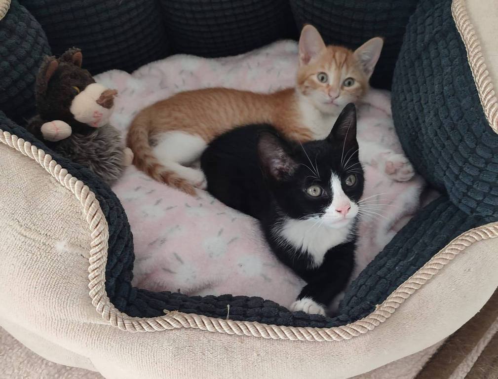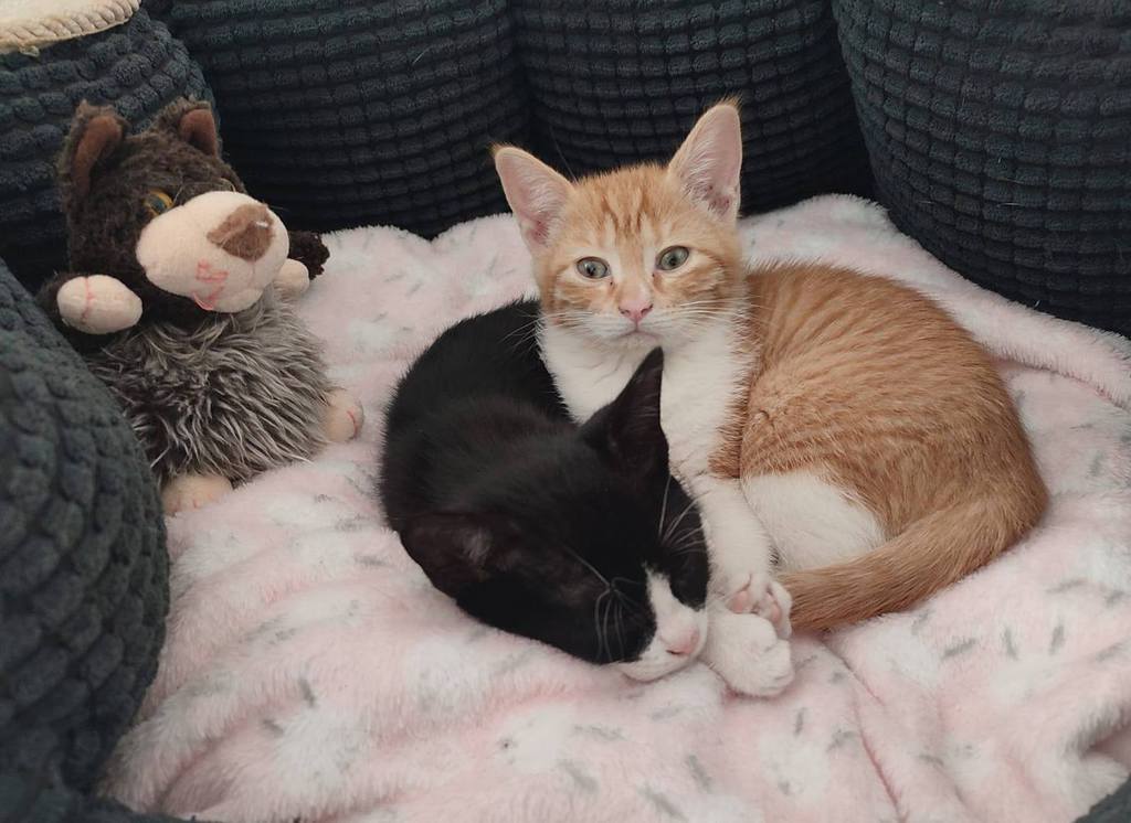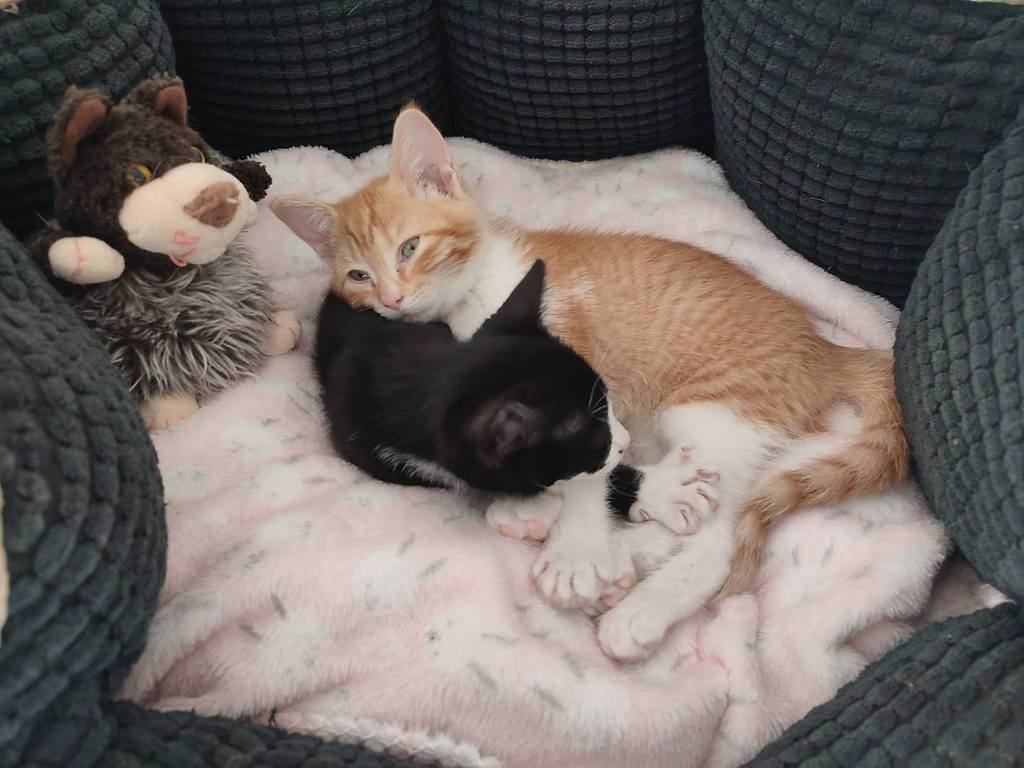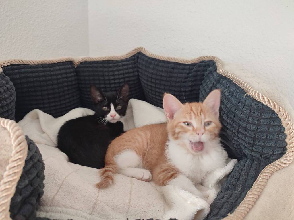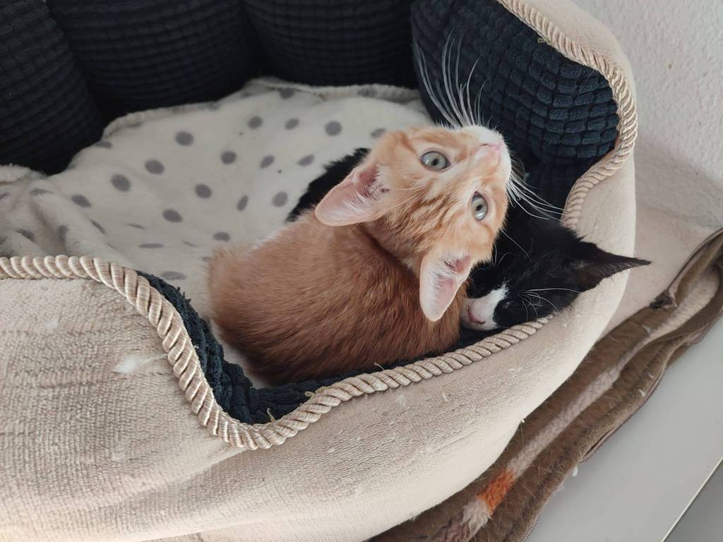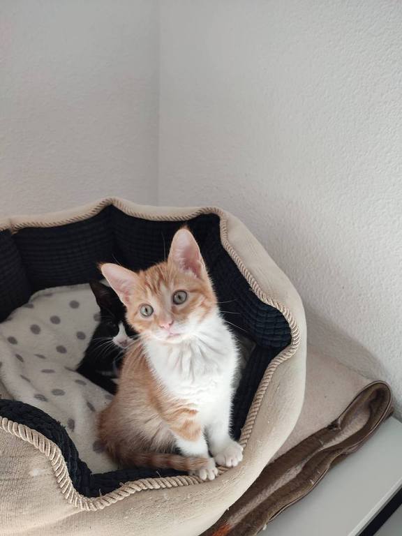 Fonsi (schwarz-weiß, Junge) und Lupina (rot) suchen gemeinsam ein glückliches Leben. Beide sind sehr liebe Katzen. Freundlich, schmusen gerne, sozial, spielen viel. Sie suchen zusammen ein Zuhause. Momentan sind sie noch auf einer Pflegestelle in Spanien. Geboren November 2025. Sie werden noch fertig geimpft, kastriert, gechipt, entwurmt und sind negativ getestet auf Felv und Fiv. Gesucht wird ein Zuhause ohne Freigang. Wenn Balkon sollte dieser schon katzensicher sein.