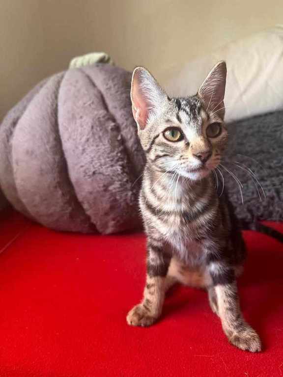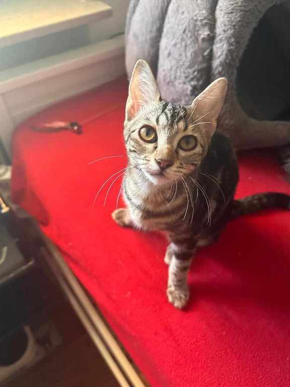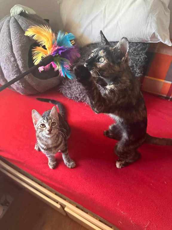 Ruta lebt auf PS bei Bad Camberg. Sie ist eine liebe, freundliche, verspielte Tigerdame, ca. 01.04.2024 geboren. Sie ist kastriert, gechipt, entwurmt, geimpft und negativ getestet auf Felv und FIV. Sie lebt zusammen mit Col und Rosa auf Pflege und kann besucht werden. Sehr sozial mit anderen Katzen, kennt Hunde.