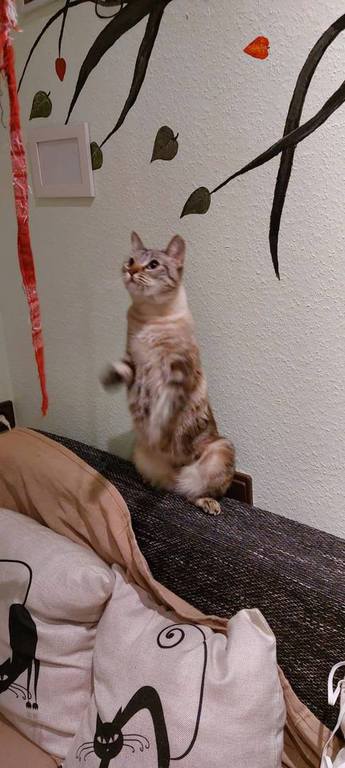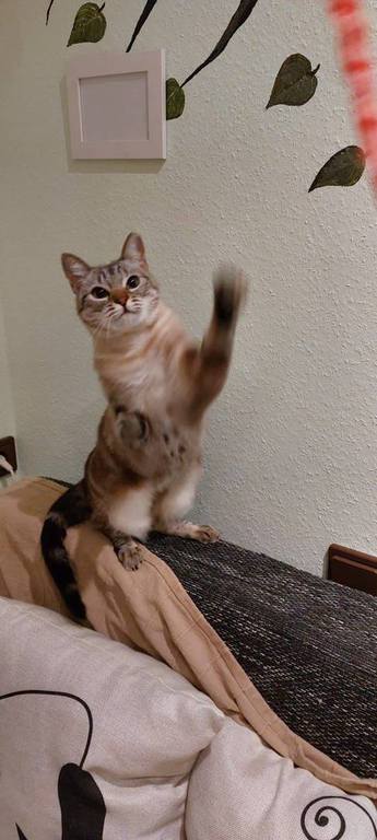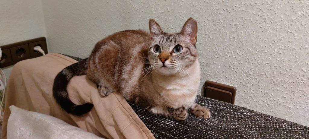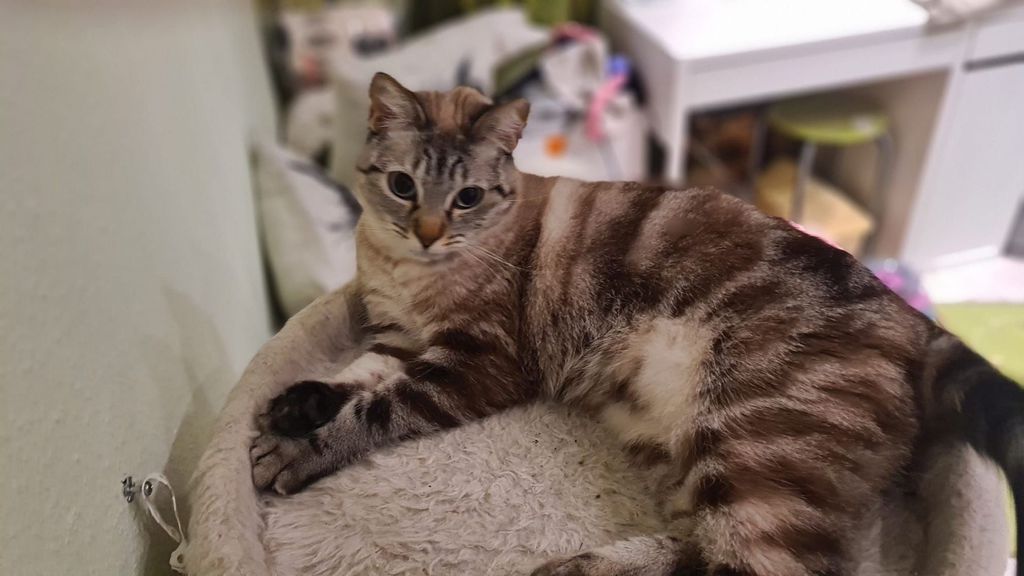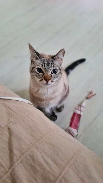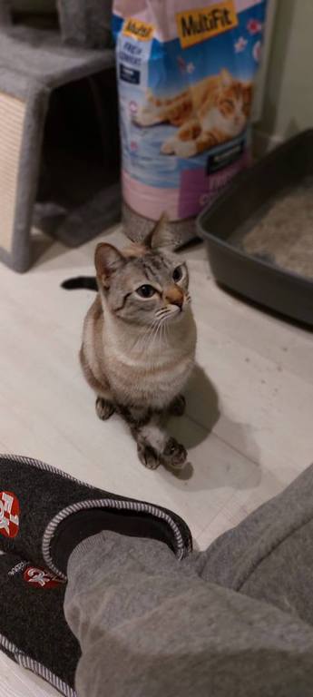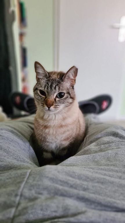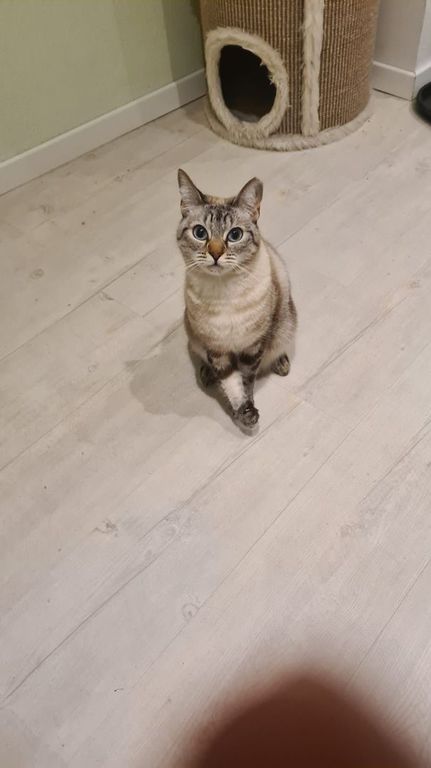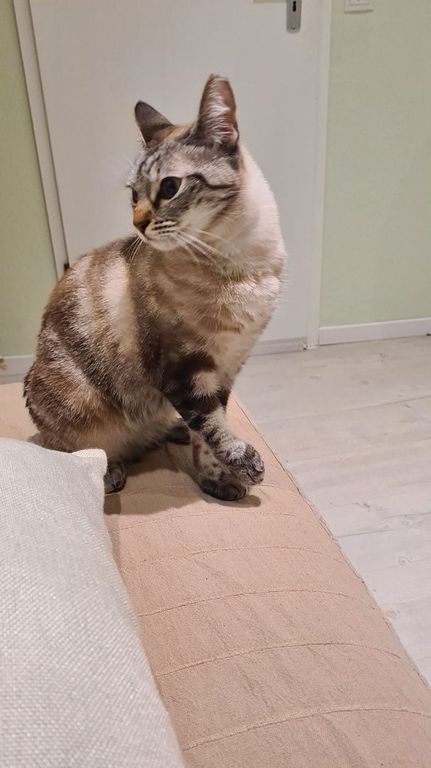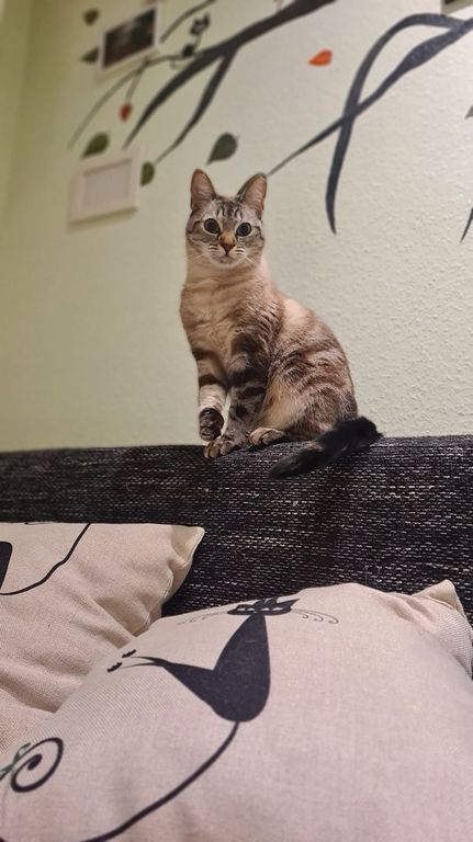 Selena ist eine ruhigere, liebe Katze, die auch mal gerne spielt. Sozial mit anderen Katzen. Siammix, ca. 5/2023 geboren. Sie hat einen behinderten Vorderfuß, dieser wurde bereits 2 x operiert und ist verkürzt. Sie kommt momentan damit klar, es kann jedoch sein, dass der Fuß doch irgendwann amputiert werden muss, dass kann man jetzt noch nicht sagen. Sie kommt damit klar, aber es sollte keine steile Treppe vorhanden sein. Selena ist geimpft, kastriert, gechipt, entwurmt und negativ getestet auf Felv und FIV. Wer hat ein Herz für die süße Siammix-Dame?