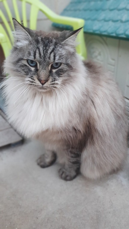 Morti ist ein sehr großer Sibirischer Kater, ca. 2022 geboren. Er findet Menschen einfach super. Freut sich über Besuch, lebt noch im Tierheim in Spanien. Von den vielen Katzen fühlt er sich sehr gestresst und unwohl. Er kommt sicher mit 1 oder 2 Kollegen klar, wenn diese freundlich sind und ihn in Ruhe lassen. Morti ist kastriert, geimpft, gechipt, entwurmt und negativ getestet auf Felv.